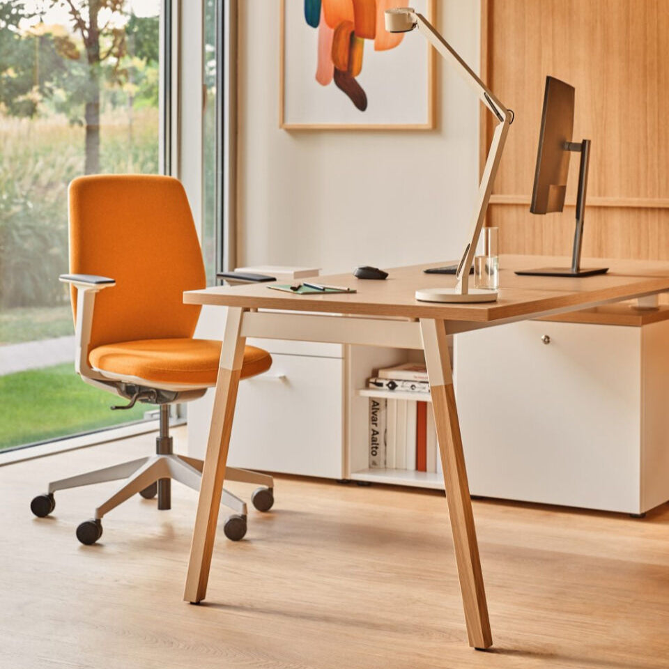 Biuro stalas OGI W, 160 x 160 cm, Mdd, konfigūruojamas