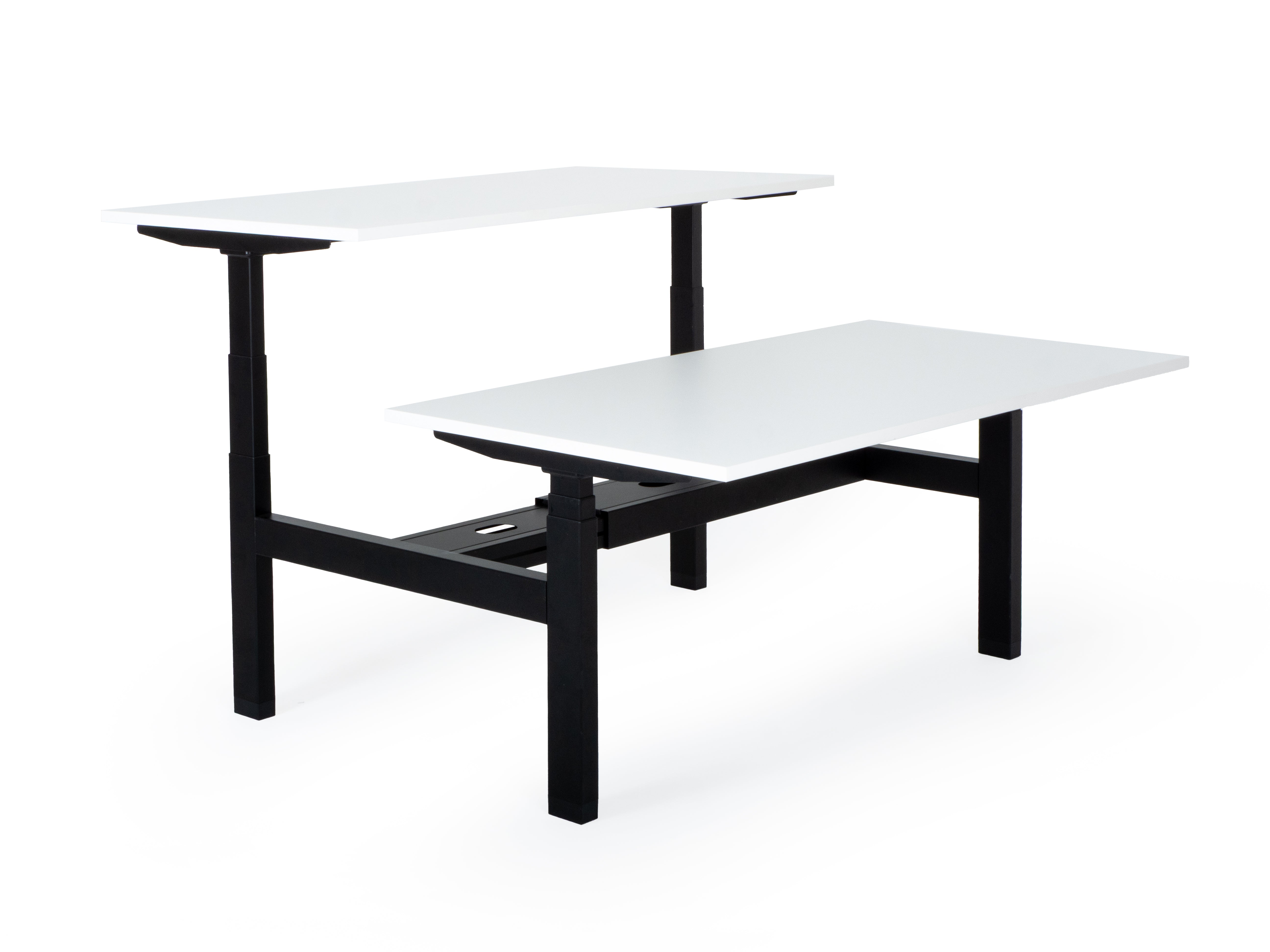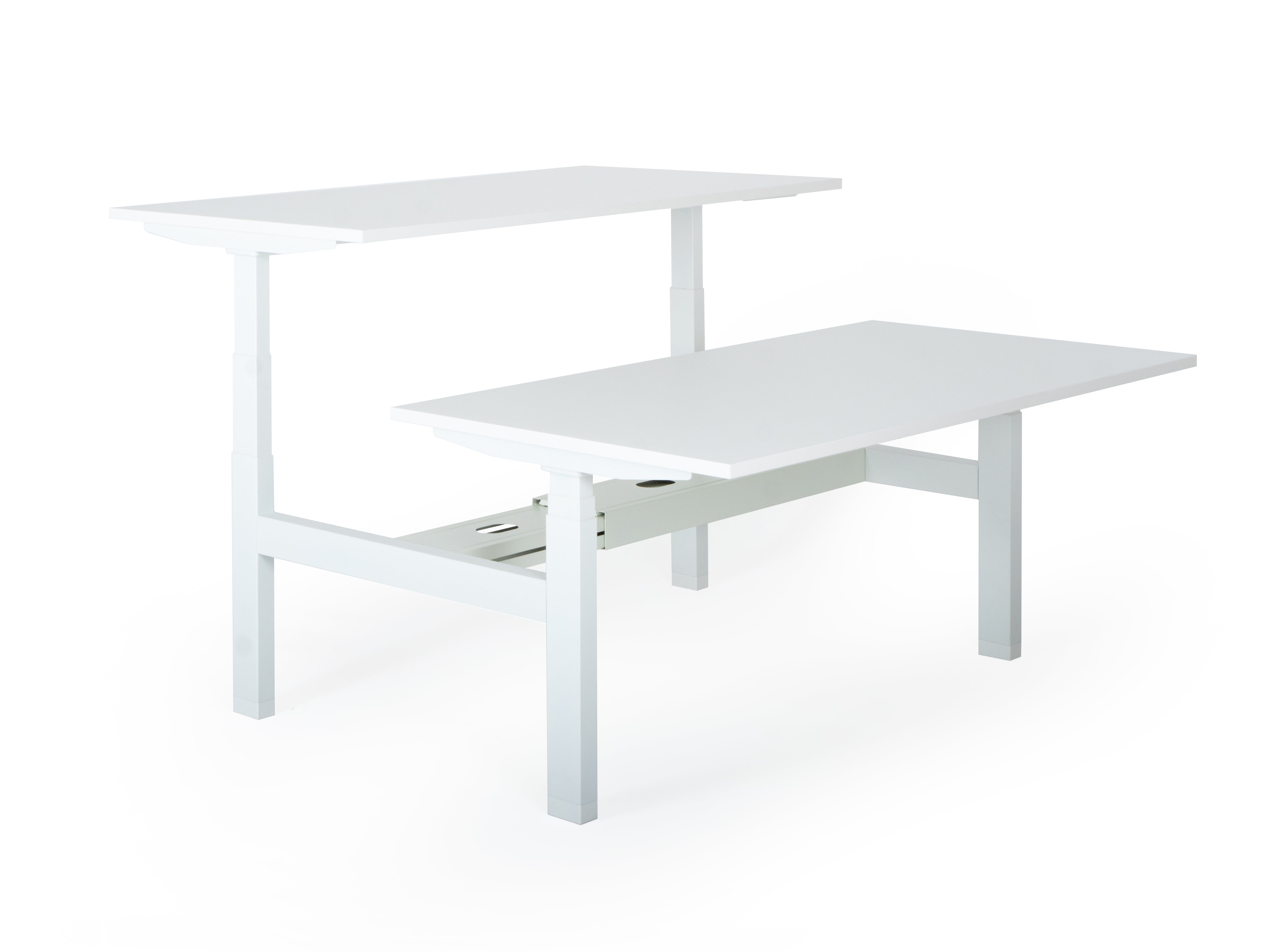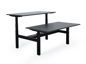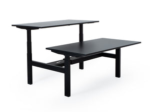 Dvigubas aukščiausios kokybės elektra reguliuojamas stalas su T formos rėmu, susidūrimo išvengimo mechanizmu ir reguliuojamomis kojomis. Stalą valdo keturi galingi elektriniai varikliai, kuriems suteikiama 8 metų garantija.