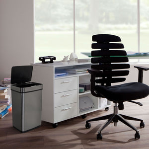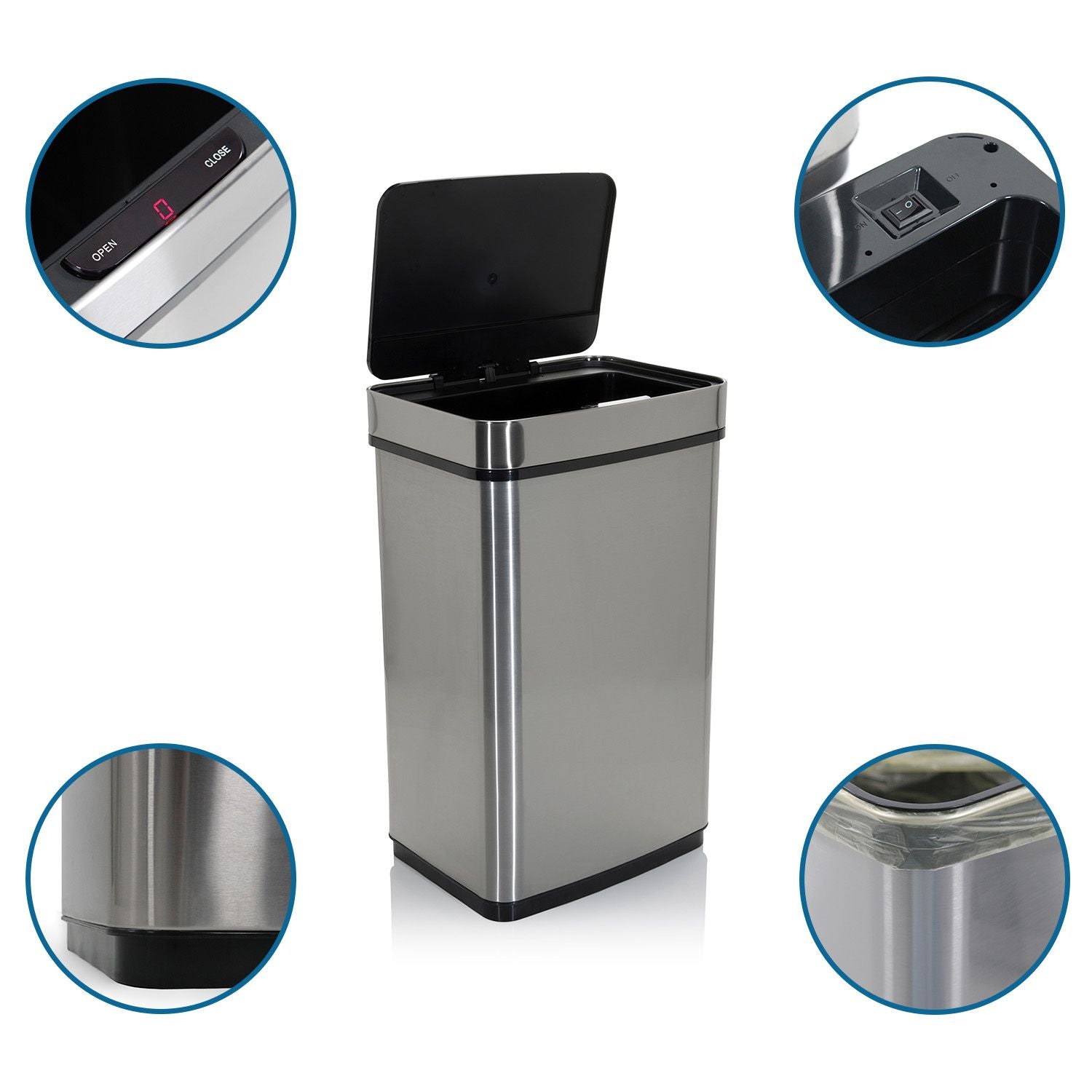 Šis plieninis konteineris yra ypač lengvai prižiūrimas dėl savo tvirtos medžiagos. Naudojant naujausią infraraudonųjų spindulių technologiją, konteineris atsidaro ir užsidaro visiškai savaime. Tiesiog laikykite ranką virš dangčio, išmeskite šiukšles ir viskas. Konteineris užsidaro automatiškai po 5 sekundžių.