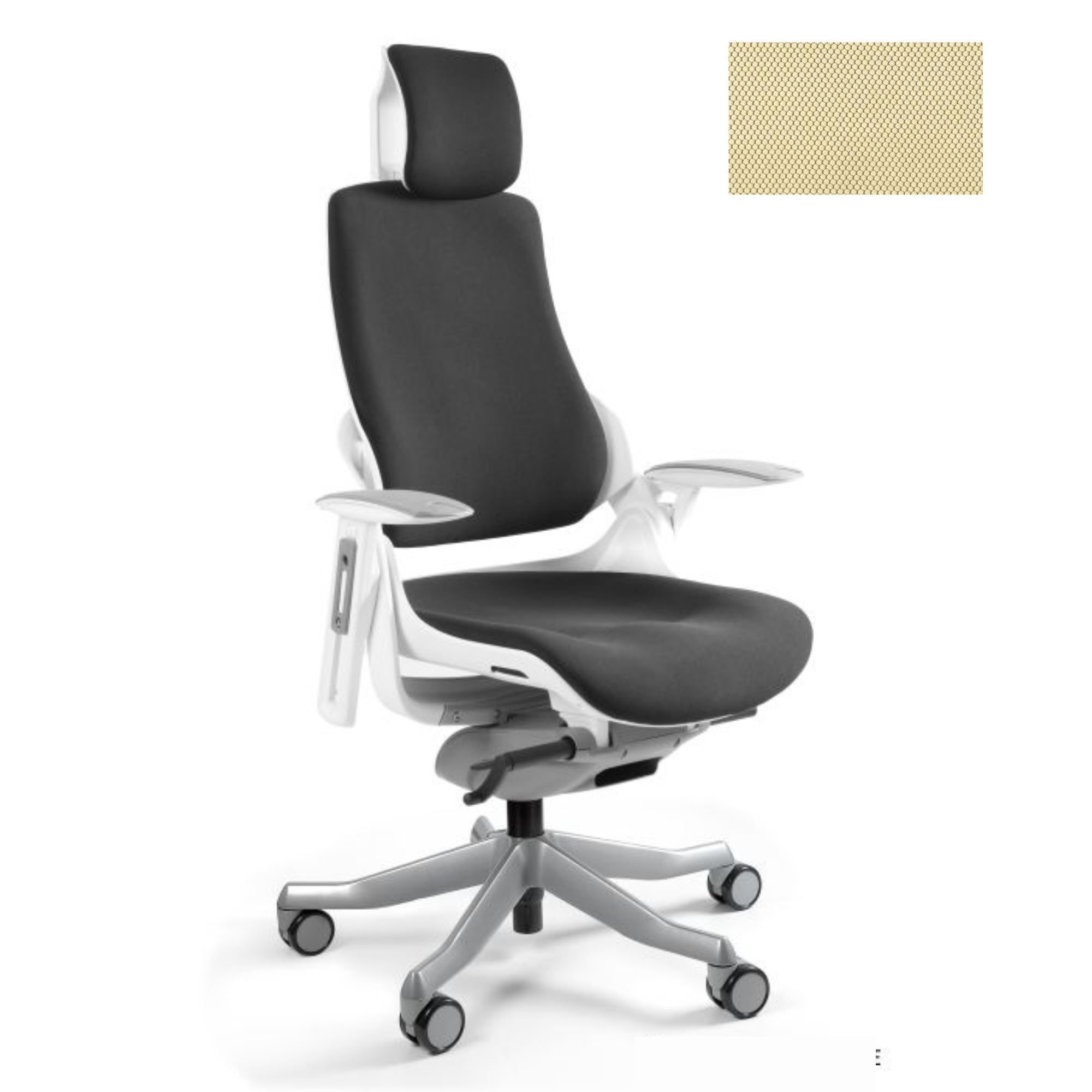 „Wau“ modelio ergonomiška kėdė su sklandžiu sinchroniniu mechanizmu leidžia užfiksuoti atlošą keliose padėtyse. Atlošo lenkimo pasipriešinimas reguliuojamas atsižvelgiant į vartotojo svorį. Taip pat galite reguliuoti juosmens atramą ir porankių kampą - lengvai susireguliuokite kėdę ir mėgaukitės darbo diena.